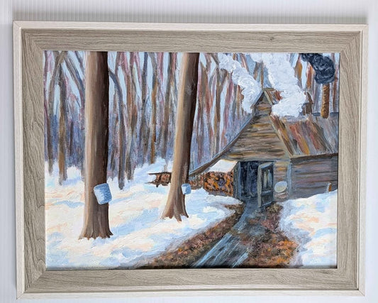 Bill (William) Saunders, Original painting of Sugar Shack in Winter - Canadian Art