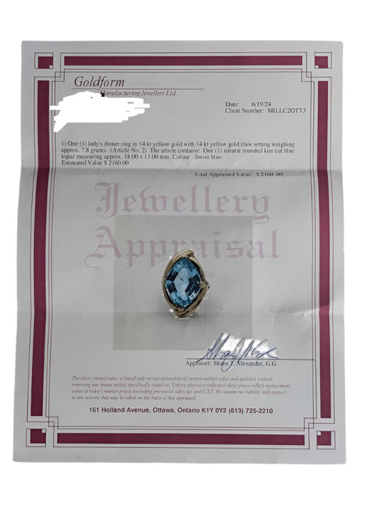 VTG Sparkling Swiss Blue Topaz & 14K Gold Cocktail Ring, Size 4, COA Included