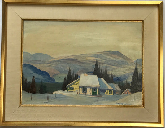 Graham Noble Norwell, RARE OIL Painting! Winter Cabin in the Mountains - Canadian Art