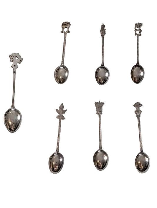 RARE set of 7 Sri Lankan Silver Demitasse Spoons, stamped