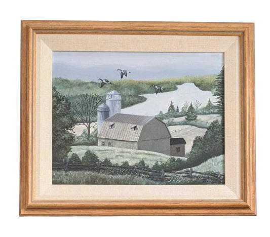 Signed Folk Art - Original Painting of a Farm by the River