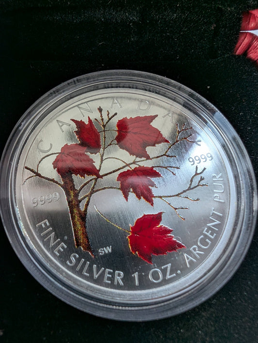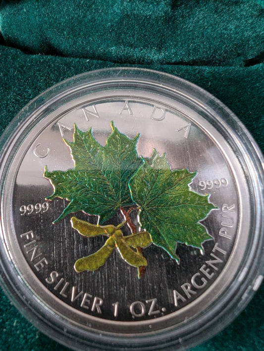 Silver Maple Leaf Coloured Coin (2004) in Case with COA