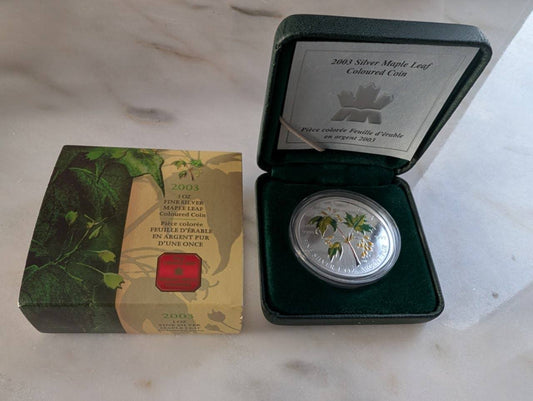 Silver Maple Leaf Coloured Coin (2003) in Case with COA