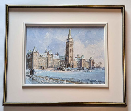 Inge Claussen, "Winter on Parliament Hill" Oil Painting - VTG Canadian Art