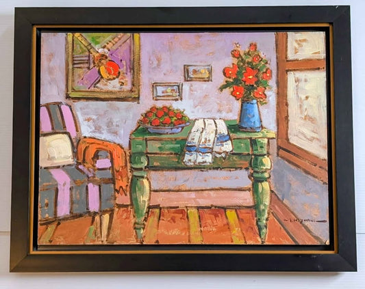 Mostafa Keyhani Lg Oil Painting of Bright Sitting Room - Iranian/Canadian Artist