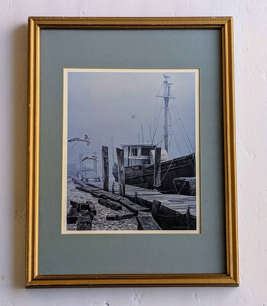 Robert Bateman Vintage Print, Boats at Dock - Canadian Artist