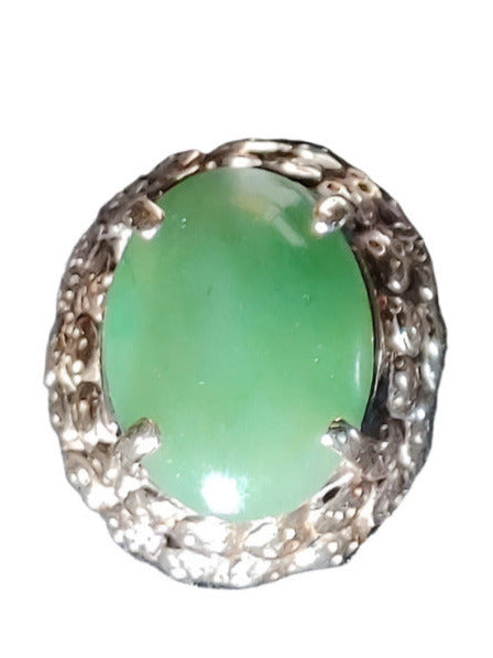 Green medium dark tone. Newly appraised at $1510.00. Ring comes with COA