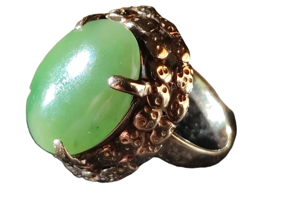 18K GOLD NEPHRITE JADE RING, size 7.14, Stamped, COA Included