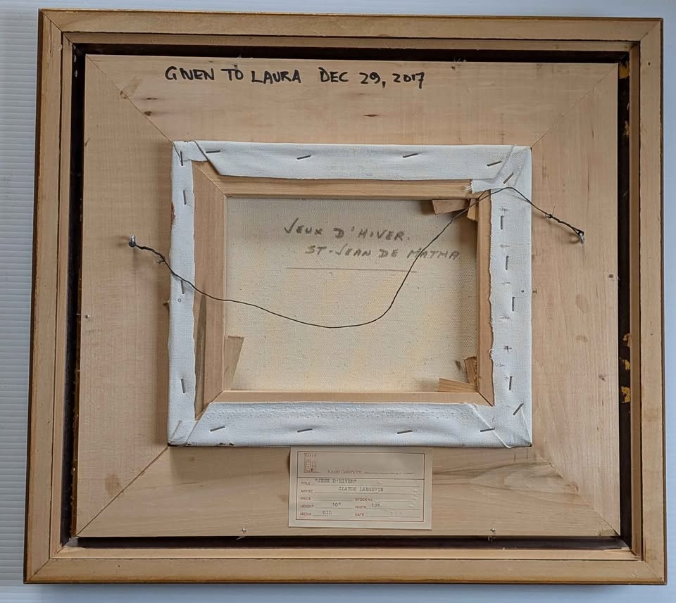 Titled "Jeux D'Hiver" and signed on back of canvas
