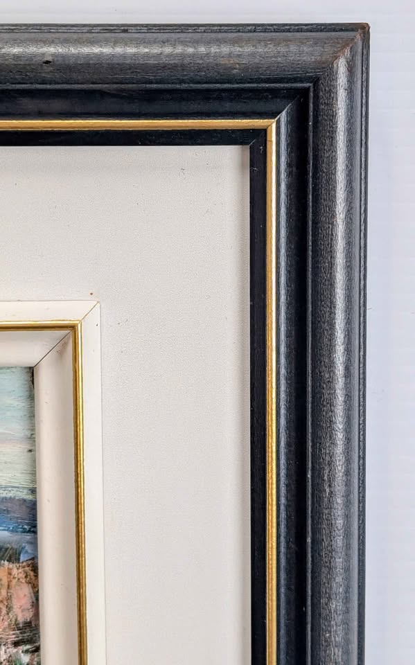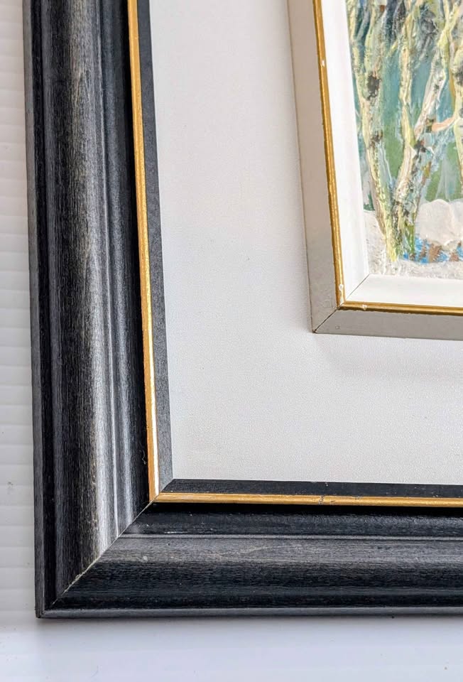 Measures 10" x 14" artwork/ frame 17" x 21" Painting is in excellent condition with minor wear on the frame. Please see photos for closeups.