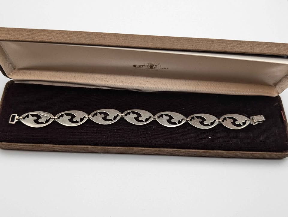 Bracelet is marked Symmetalic and dates from the 1930-1940s